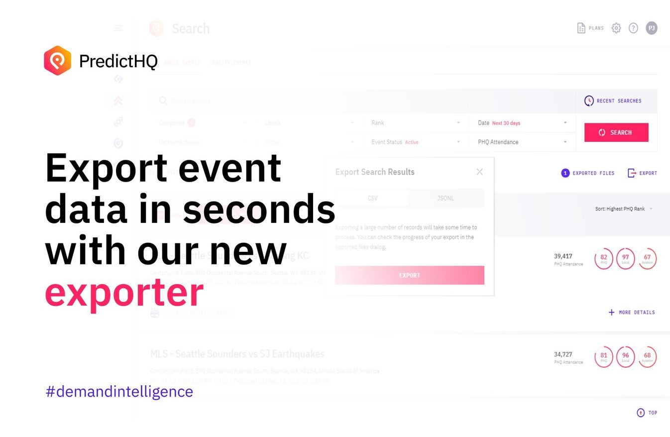 As many of you are familiar, our WebApp is the central access point for PredictHQ customers to explore, search, manage and use PredictHQ’s demand intelligence data. Before now, if you wanted to export data, you had to open an external (much more technical) application. We've moved our export function to live within the WebApp so export is as simple as running a search and clicking export. See using the WebApp for an overview of our WebApp.