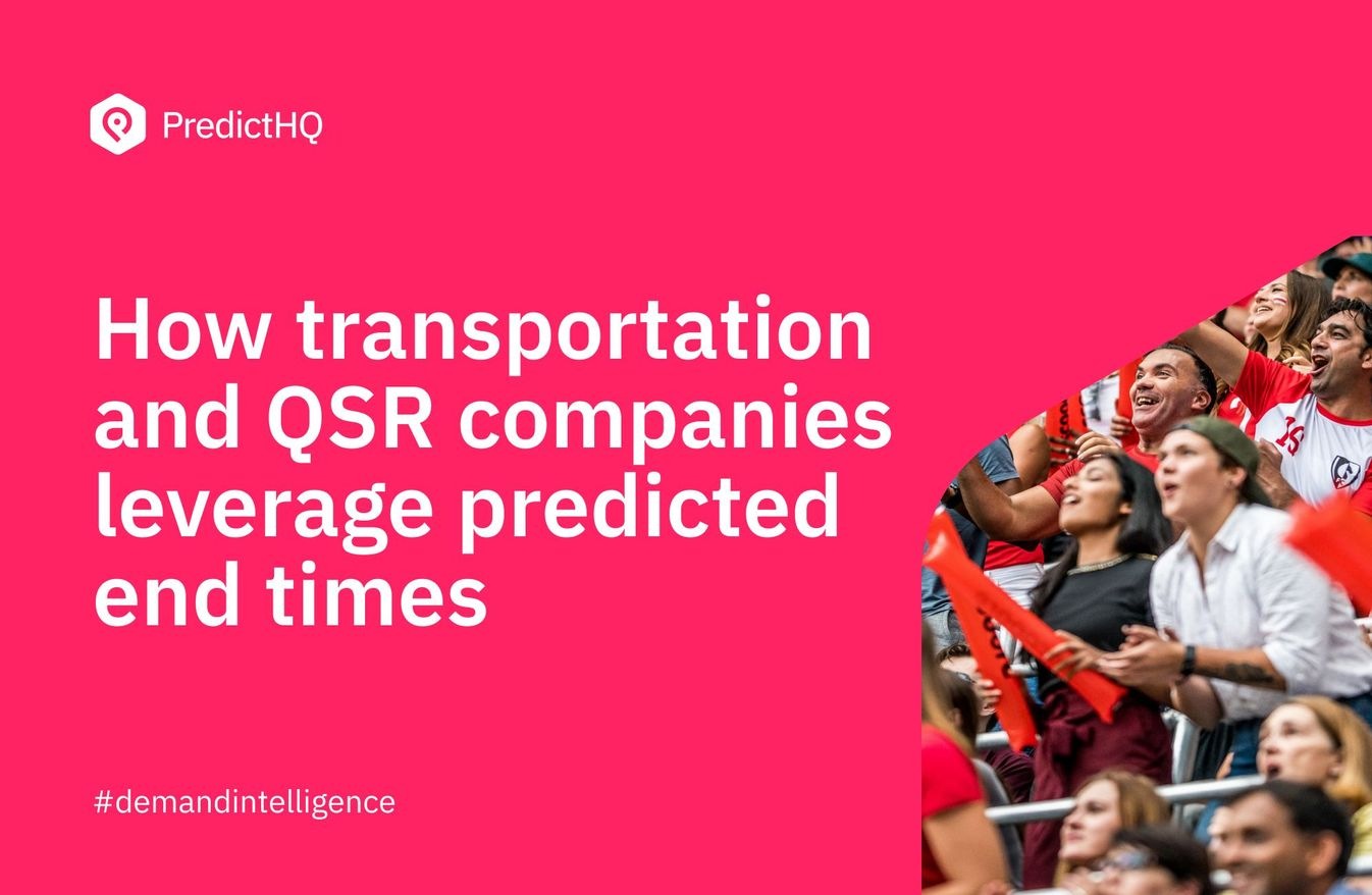 You could try predicting the end time yourself, but this would be tricky to do accurately without robust machine learning models. PredictHQ’s Predicted End Times was built from years of historical data which takes into account the specific sport, how the current season is going, and which teams are playing to determine how long a game is likely to last. We offer Predicted End Times coverage for major sports. Supported sports are football, baseball, basketball, Ice-hockey, NASCAR, and soccer. For many games, we also update our database with actual end times after a game finishes to give you the most accurate historical data possible.