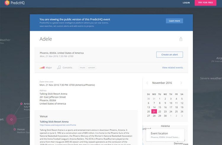 In our constant mission to make event intelligence more accessible for everyone, we’ve decided to allow our event detail pages to be publicly viewable. This means that even if you aren’t logged into PredictHQ or if you don’t have a PredictHQ account, you will still be able to view an event’s details page.