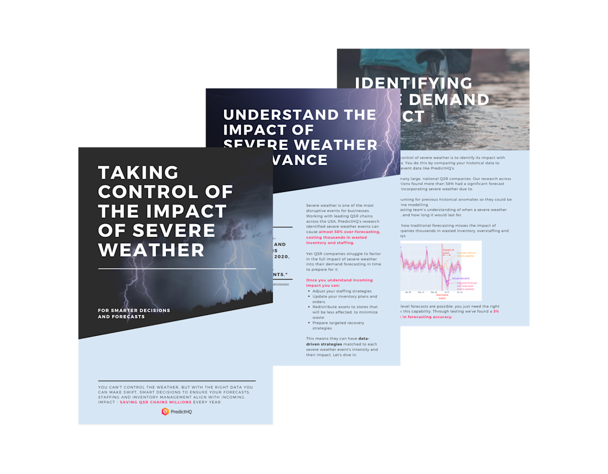 You can’t control the weather, or predict when severe weather will occur. But you can respond faster and more accurately with the right external data. We've built a set of highly targeted set of features to enable national QSR and retailers to do exactly that. This report explains how to equip your teams and models with most up to date intelligence to update your demand plans and forecasts as severe weather events emerge.