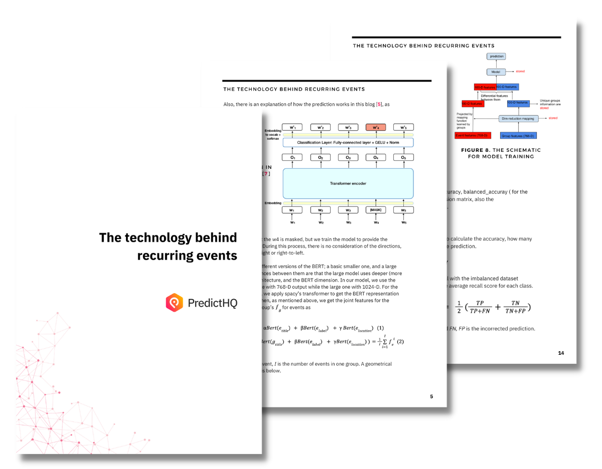 Download the whitepaper now to discover the technical details that power two of PredictHQ's machine learning models that find and link recurring events automatically: grouper and linker.