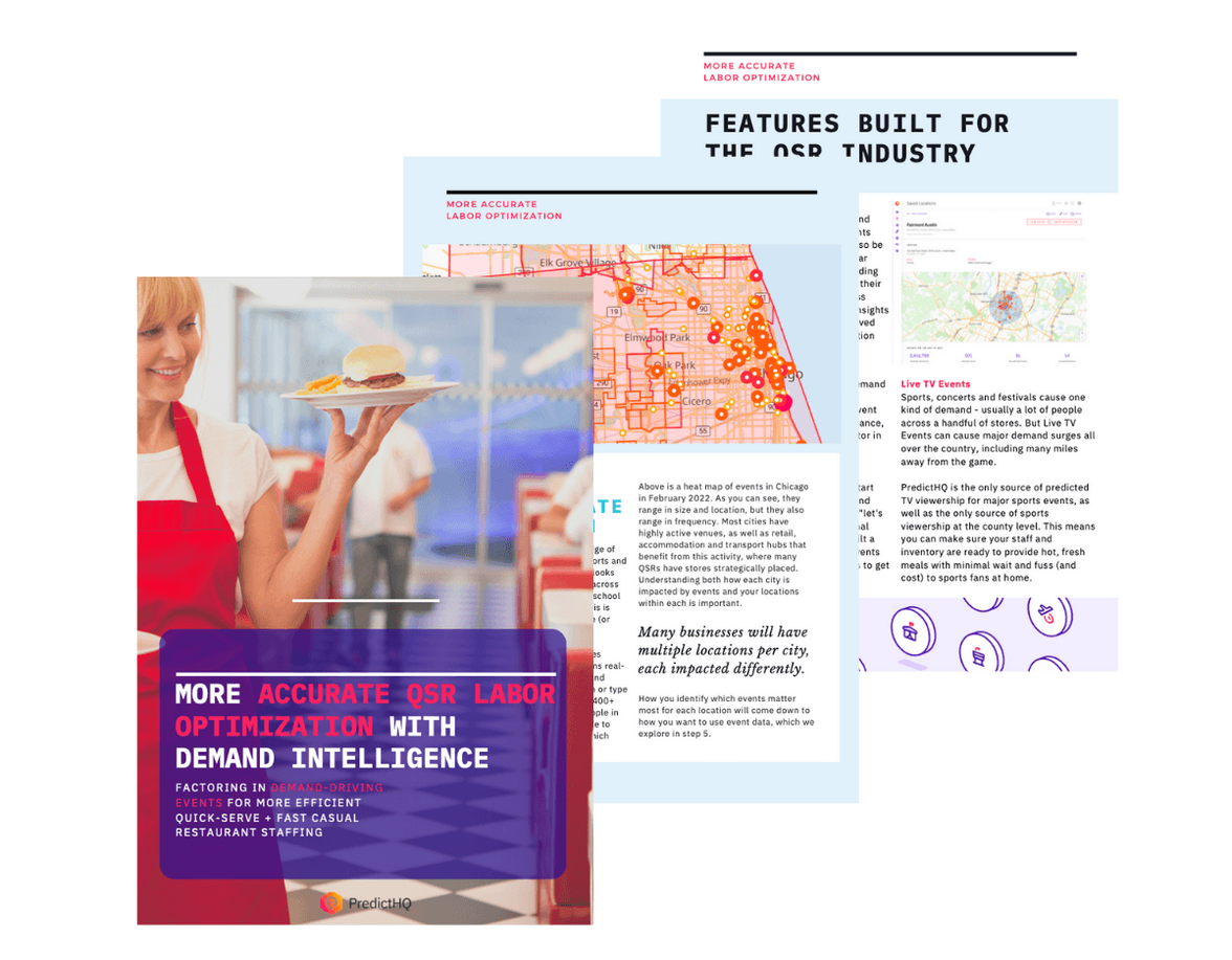 Labor forecasting for quick serve restaurants is high-impact and difficult to get just right. With so many factors impacting footfall and demand, it's critical to ensure you have the right amount of staff scheduled to meet demand to keep customers happy – without wasting money on surplus staff. This report explores how leading restaurant chains use event data for better staffing, and you can too.